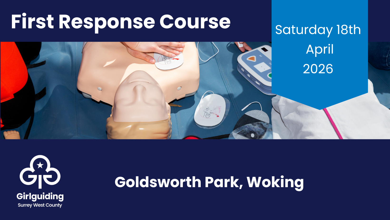 This is the full First Response course, to include all theory and practical elements. Times : 9.30am until 4.30pm Please note that the cost of this training should be claimed back from your unit. You can also claim back any travel costs.
